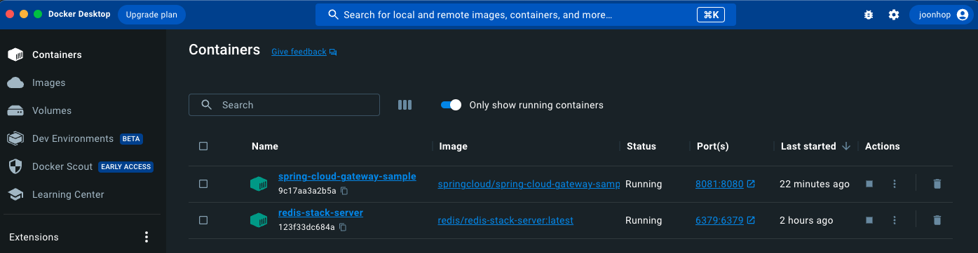 해당 repository를 점검하다보니 Redis 연동이 필요하여 아래와 같이 Docker로 Redis Container를 실행한다.
