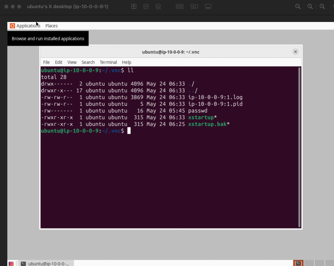 ubuntu@ip-10-0-0-9:~/.vnc$ vncserver :1