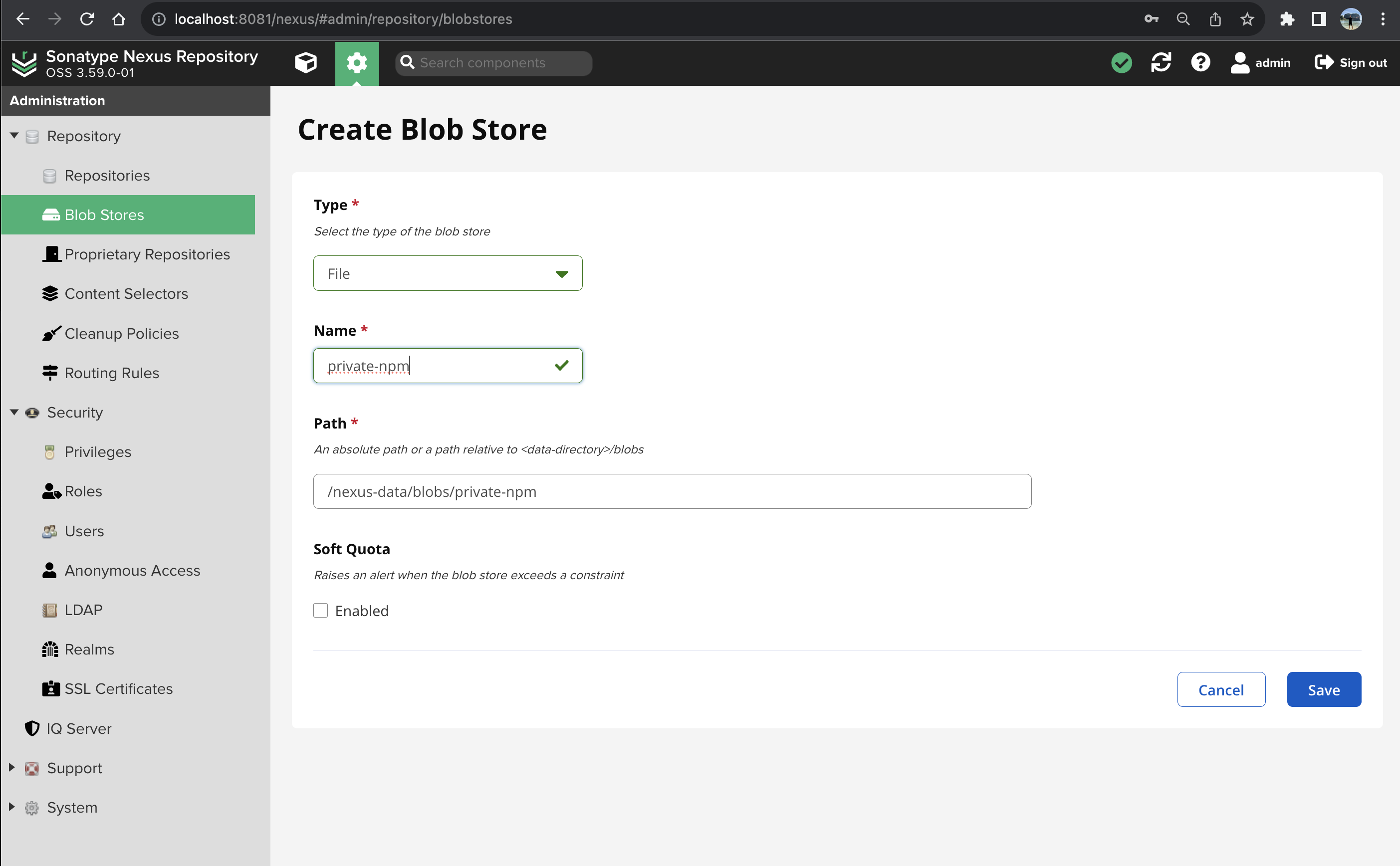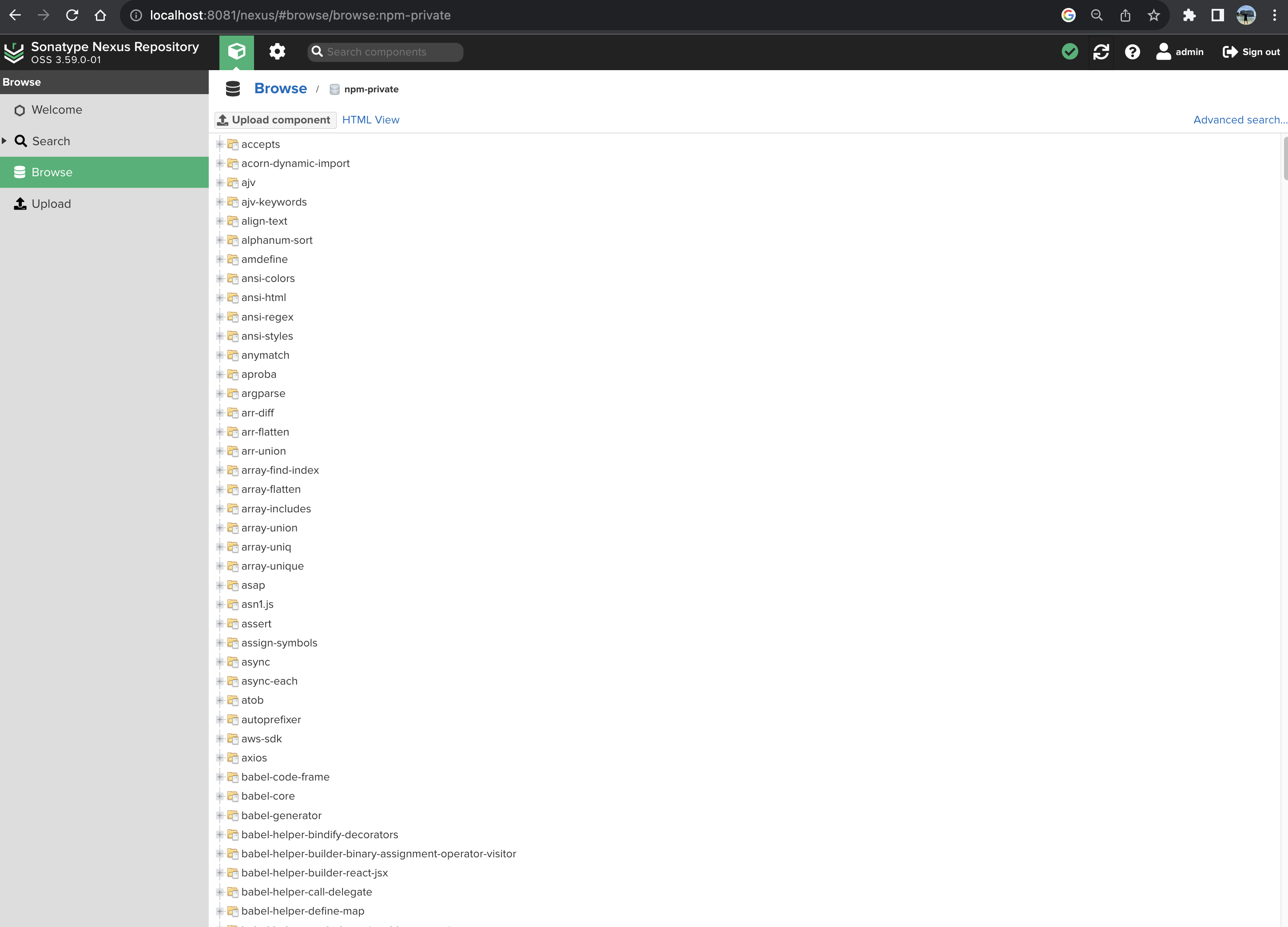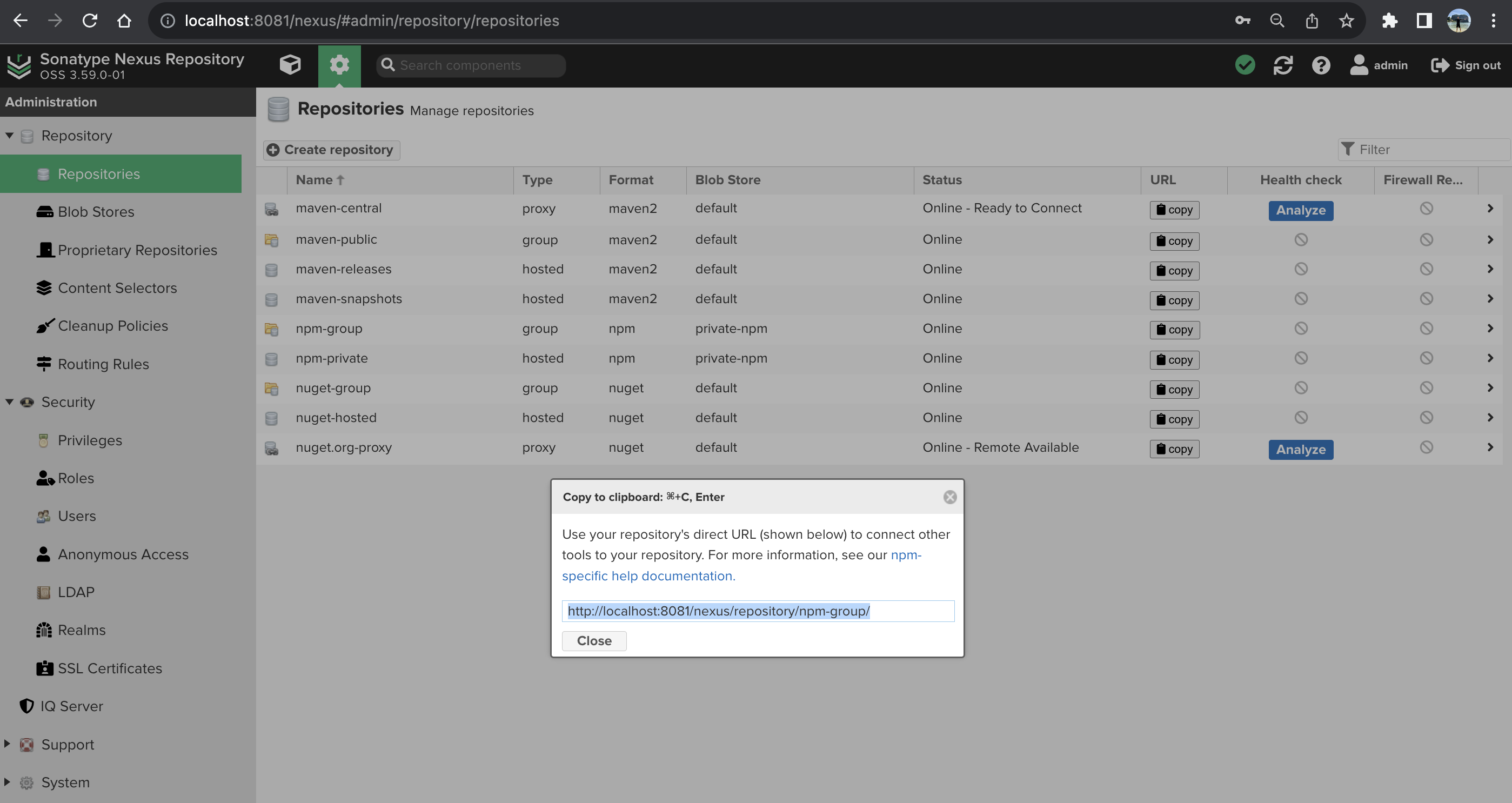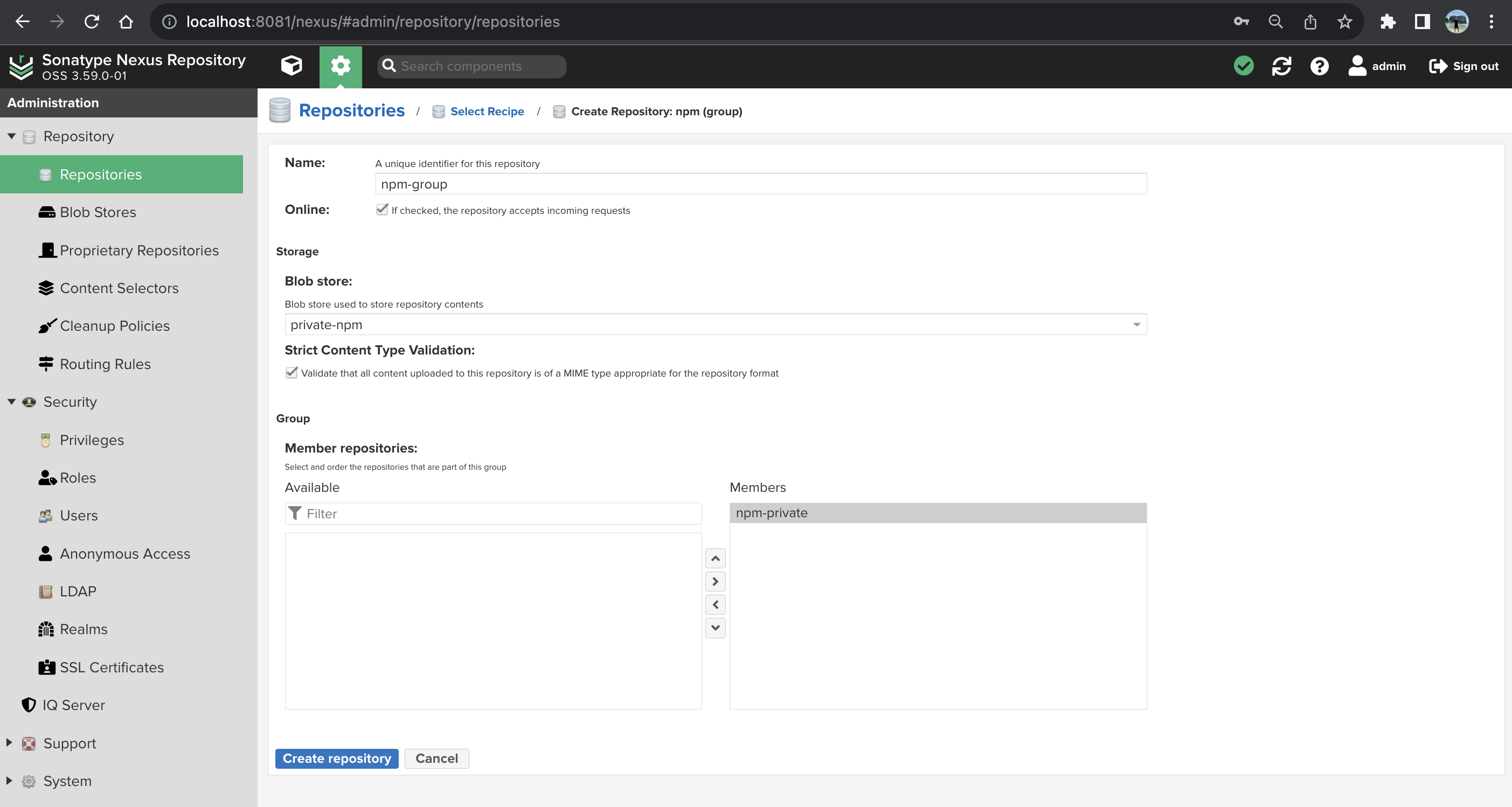 "registry": "http://localhost:8081/nexus/repository/npm-private/"